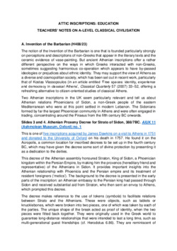 Teachers' Notes on Athenian inscriptions supporting the Classical Civilisation Component on Invention of the Barbarian (H408/23).